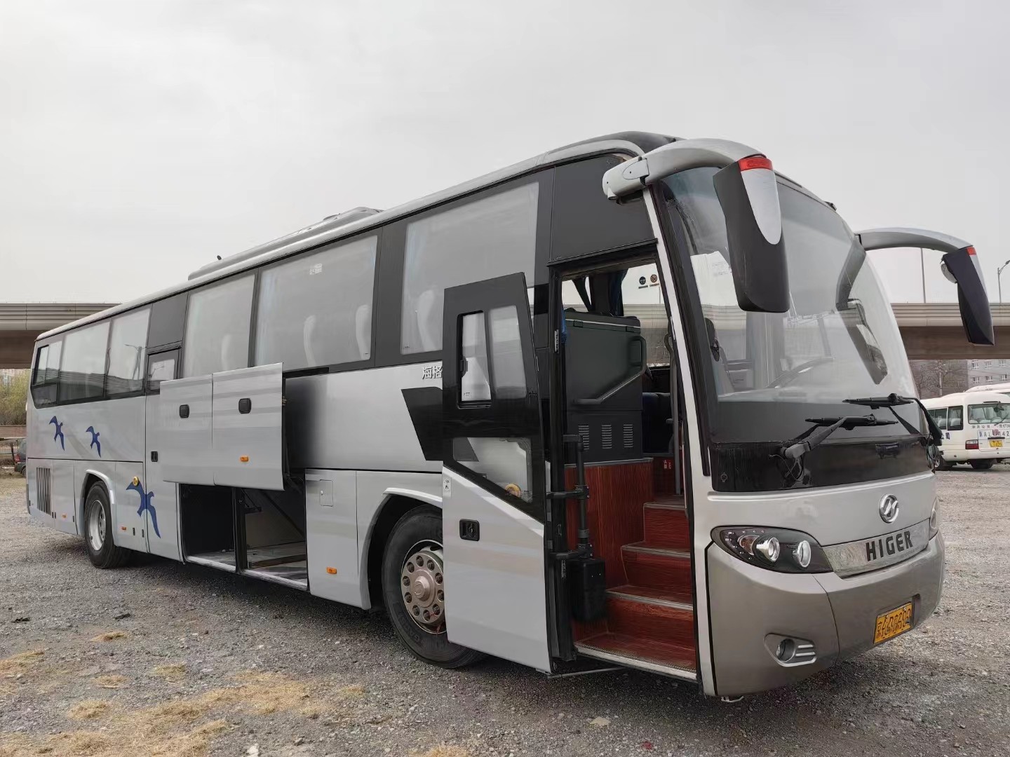 Used Tour Bus 54 Seats 12 Meters Yuchai 6 Cylinders Engine Double Doors Silver Color 2nd Hand Higer KLQ6125
